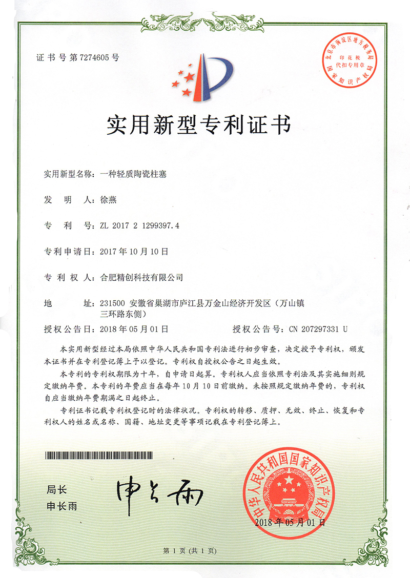 (2018實用新型)一種輕質(zhì)陶瓷柱塞